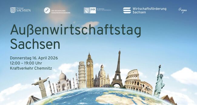 Am 16. April 2026 findet im Kraftverkehr Chemnitz der Außenwirtschaftstag Sachsen unter dem Motto „Vom Umbruch zum Aufbruch“ statt